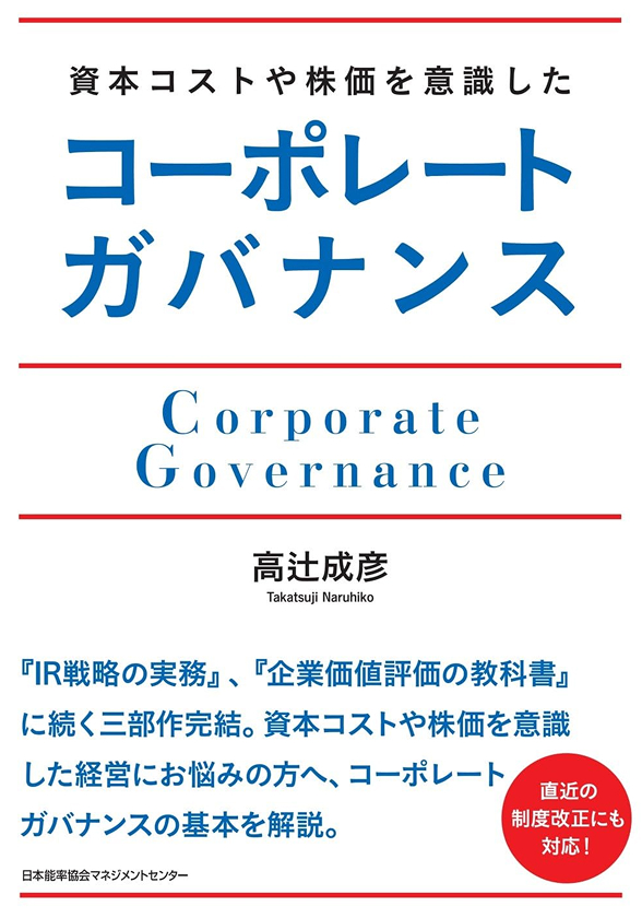 髙辻成彦先生は、著書『IR戦略の実務』、『企業価値評価の教科書』、『資本コストや株価を意識したコーポレートガバナンス』の企業財務3部作を通じて、IRの基礎のほか、企業価値評価の基礎となる資本コスト、前2作にあるIRや資本コストを踏まえたコーポレートガバナンスの重要性を体系的に解説されています。